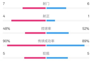 拜仁半场0-1国米数据:射门7-6,射正4-1,控球率48%-52%